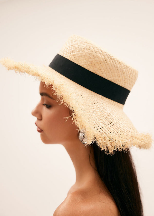 Raffia Hat with Wide Brim Band
