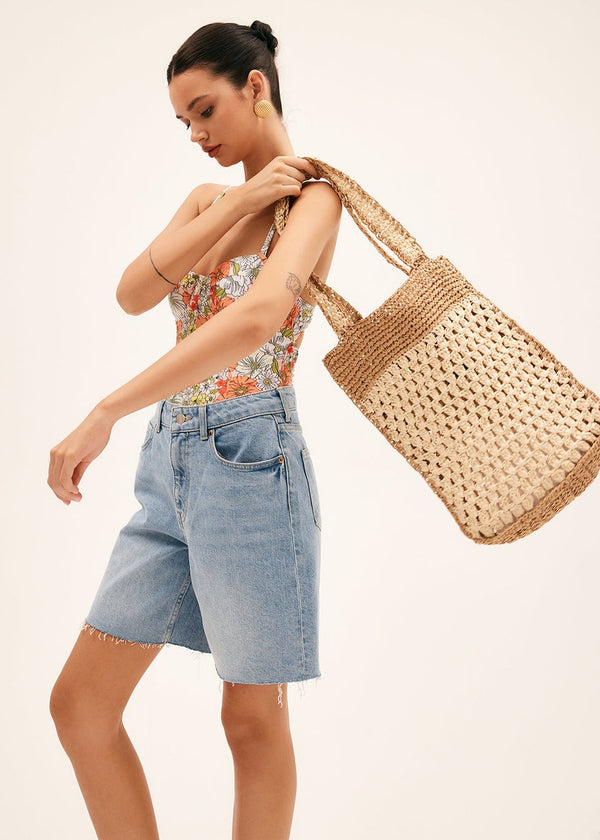 Top Handle Woven Straw Bag