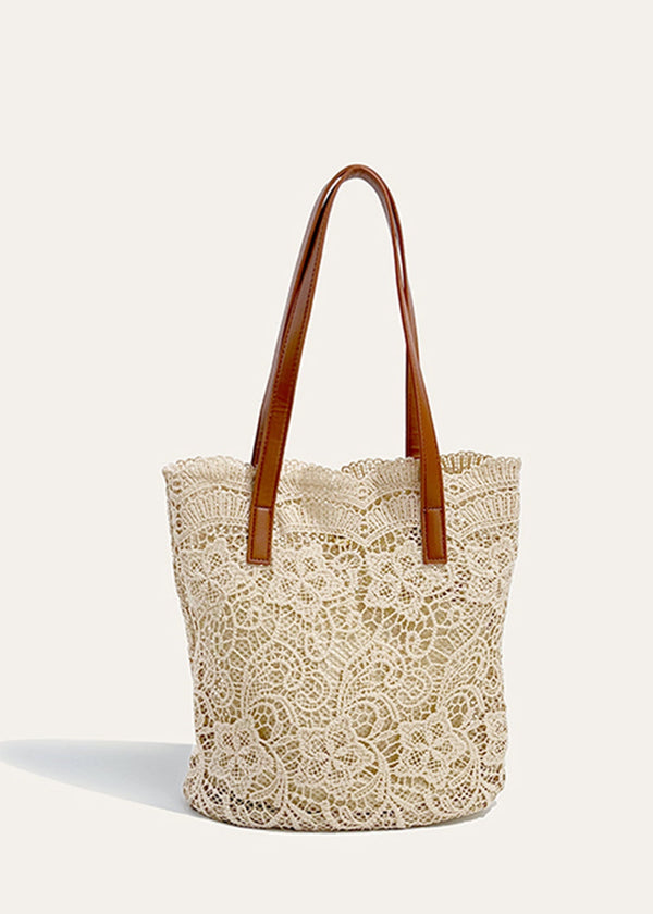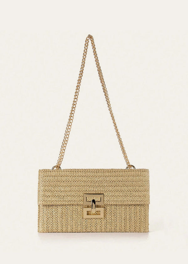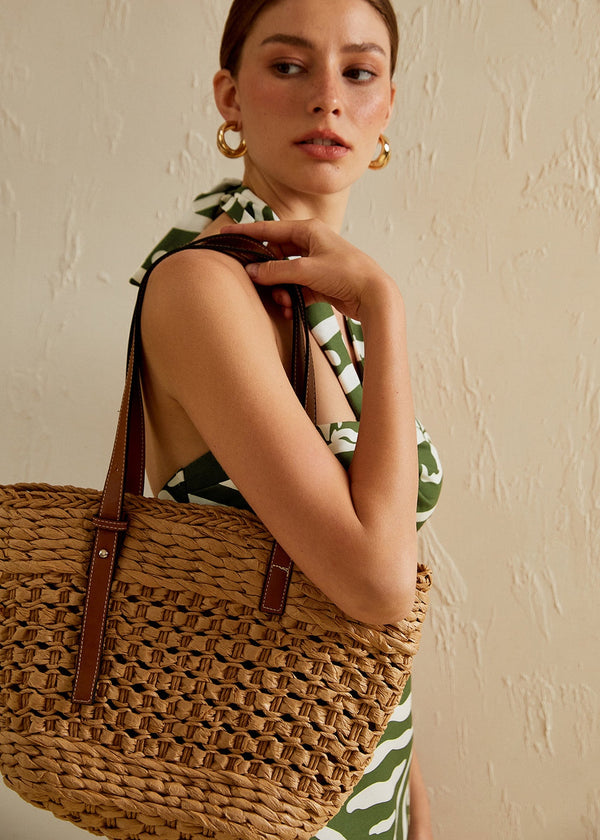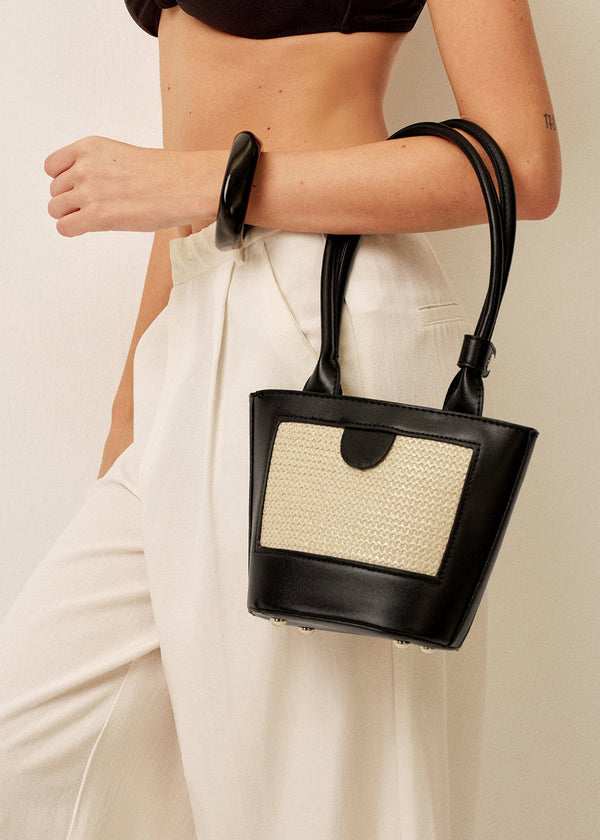 Woven Crescent Shape Sculpted Handle Shoulder Bag