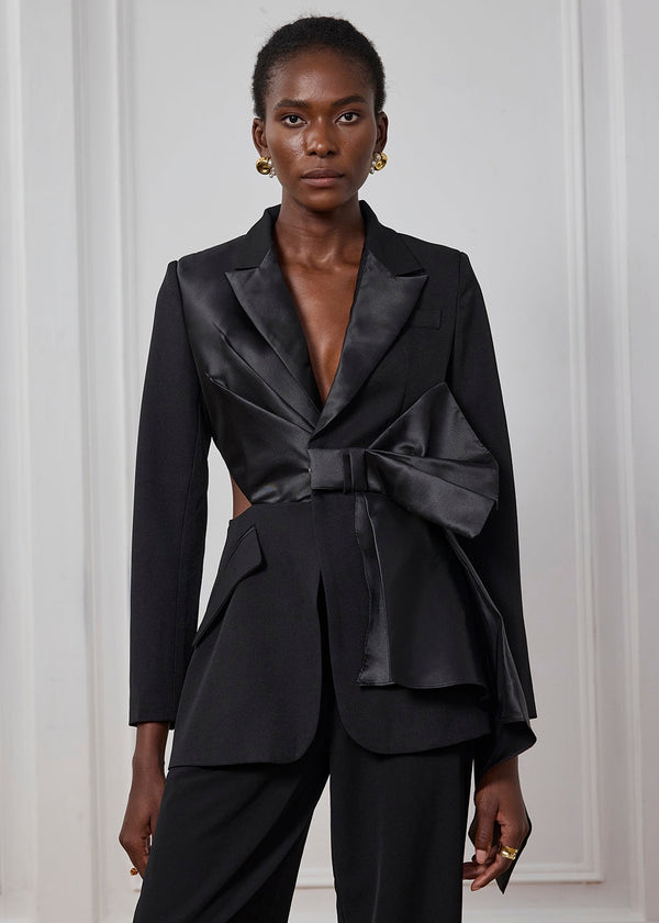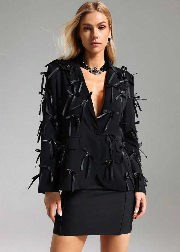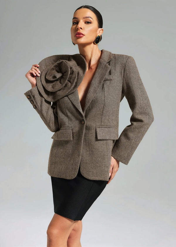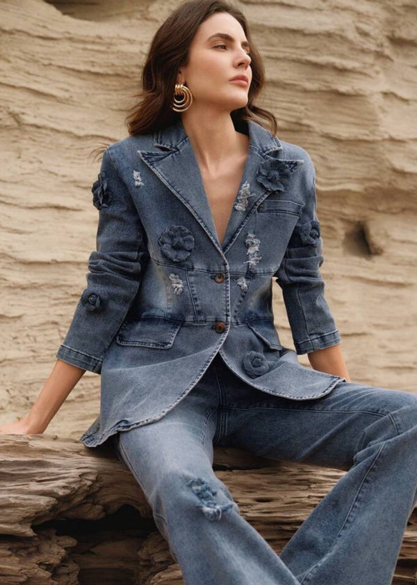 Rose Shoulder Embellishments Notched Lapel Blazer