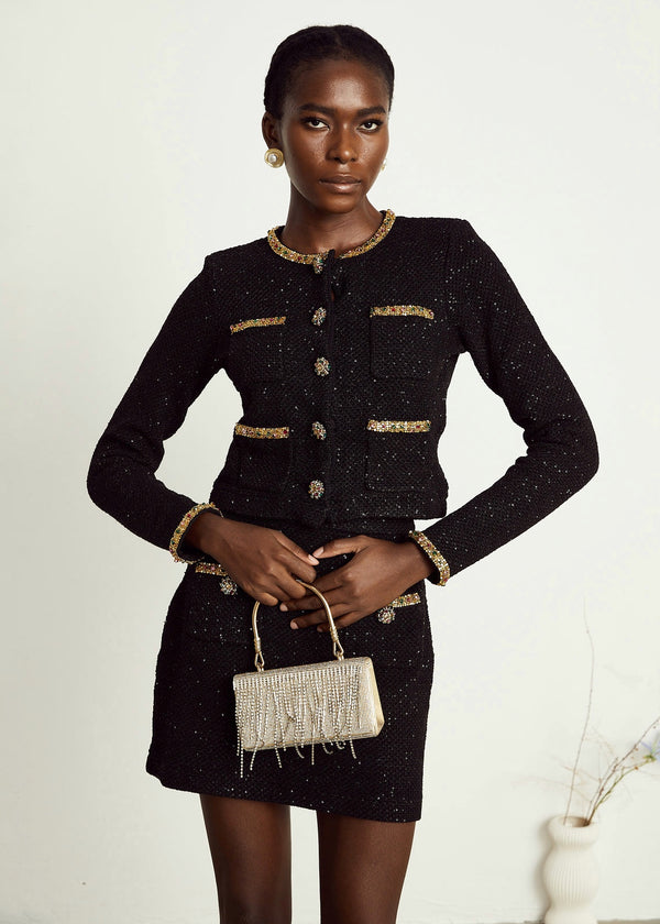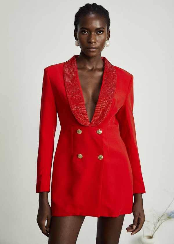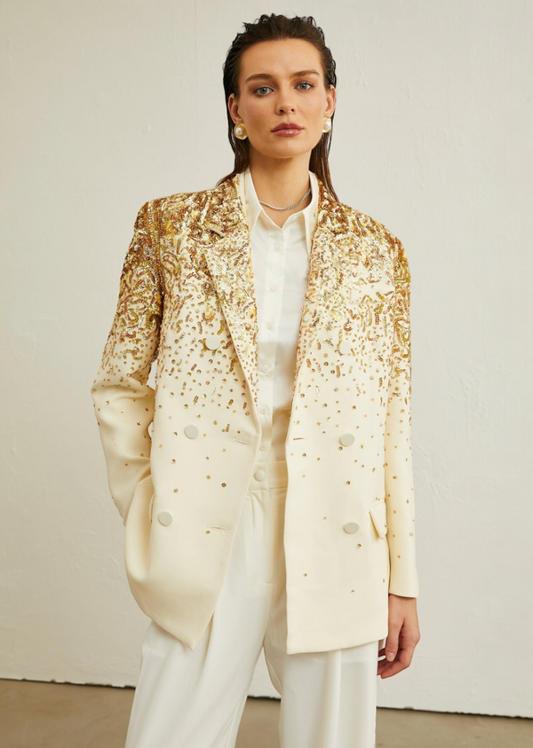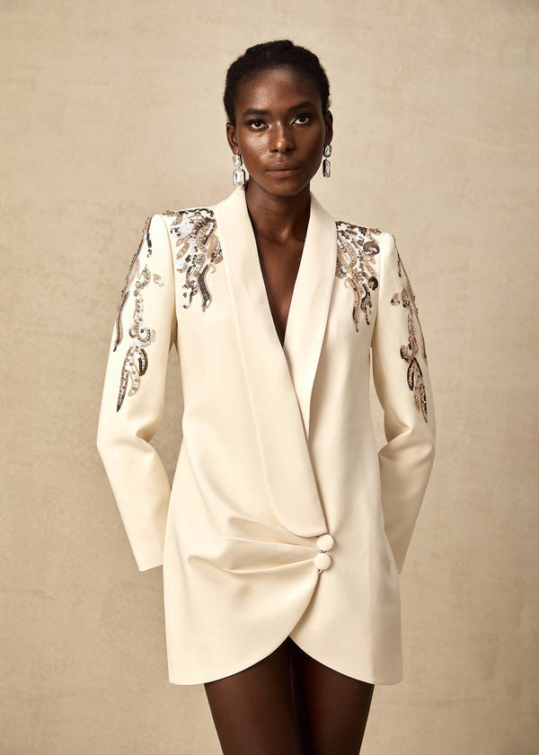 Lapel Collar Shoulder Rhinestone Embellished Blazer