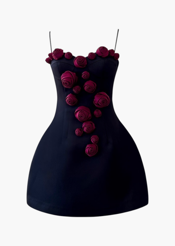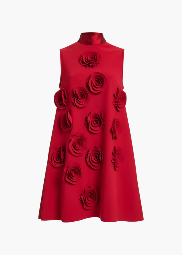 Floral Petal Shoulder Ruffle Hem Mini Dress