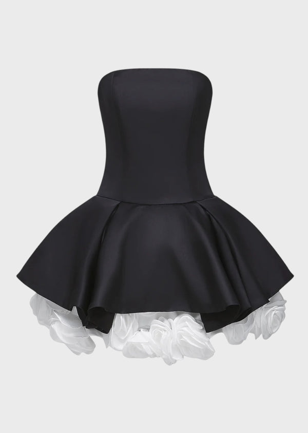 Strapless Sculpted Skirt Floral Hem Mini Dress
