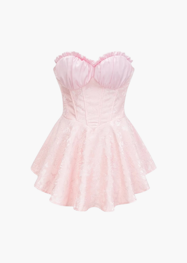 Strapless Jacquard Corset Bodice Flared Mini Dress