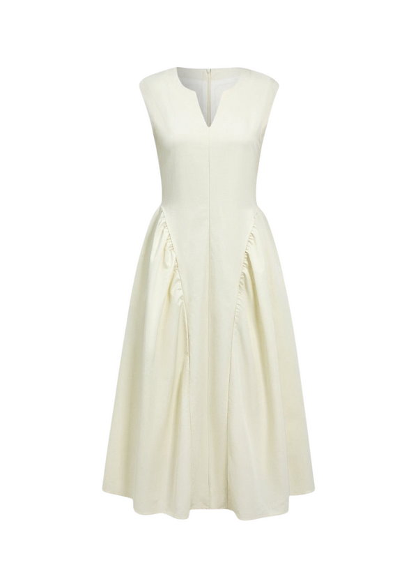 Waist Roses Short Sleeves Flared Skirt Midi Dress