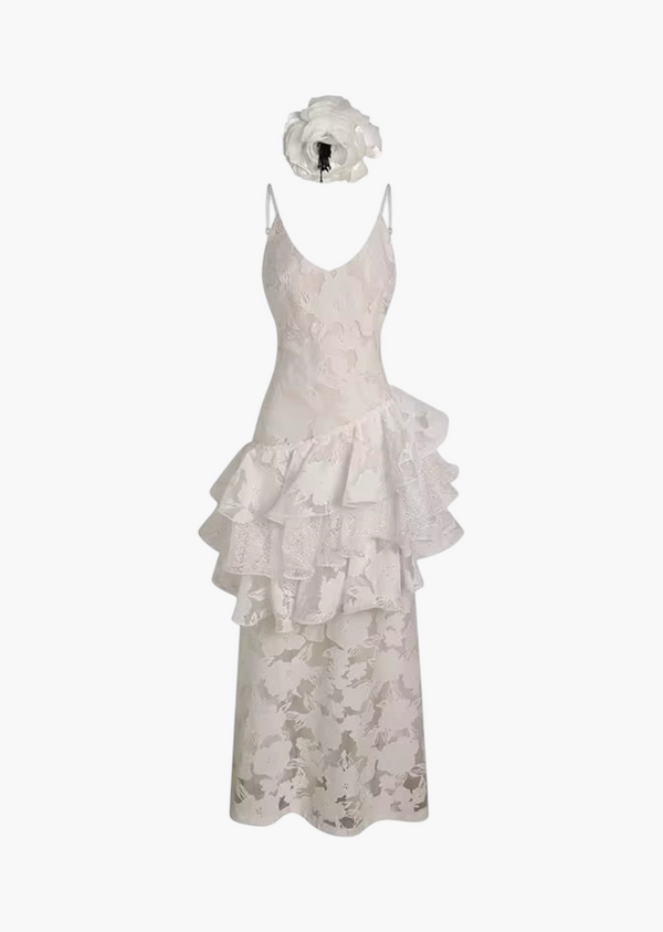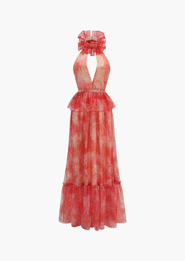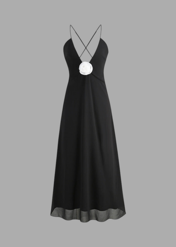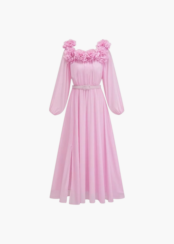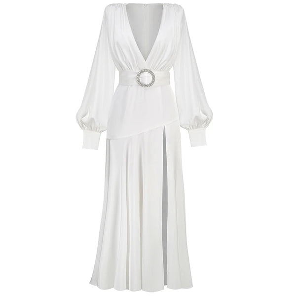 Lantern Sleeve Deep V-Neck Side Slit Dress