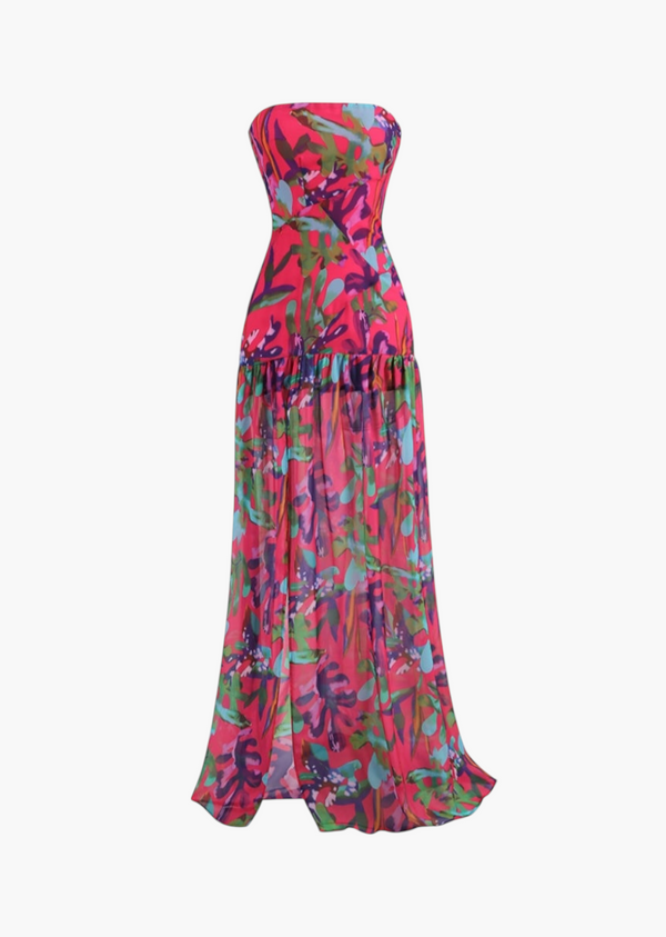 Smocked Bodice Strapless Ruffled Tiered Mini Dress