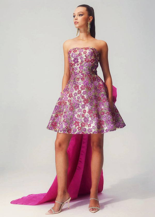 Lantern Sleeve Deep V-Neck Side Slit Dress