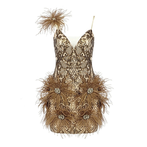 Mesh Sequins & Feathers Embroidered Mini Dress