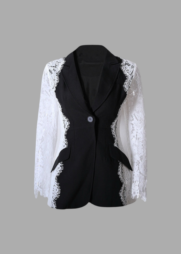 Lace Patchwork Single-Button-Closure Blazer