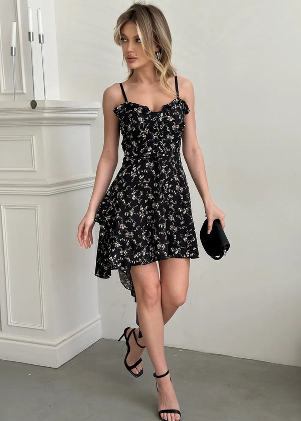 Floral Print Corset-Style Asymmetrical Dress