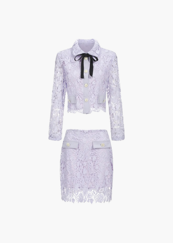Cropped Jacket Mini Skirt Lace Two-Piece Set