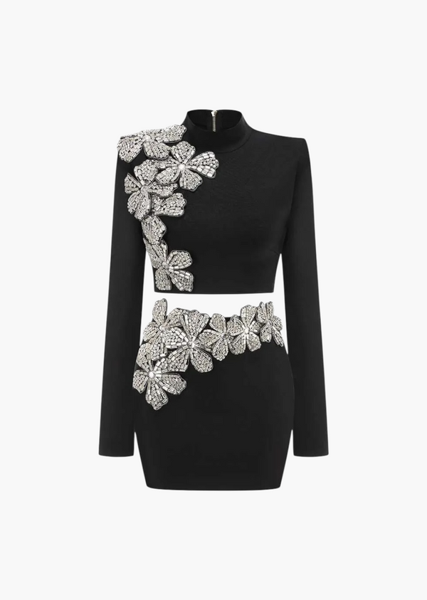 Floral Appliqué Cropped Jacket Mini Skirt Set