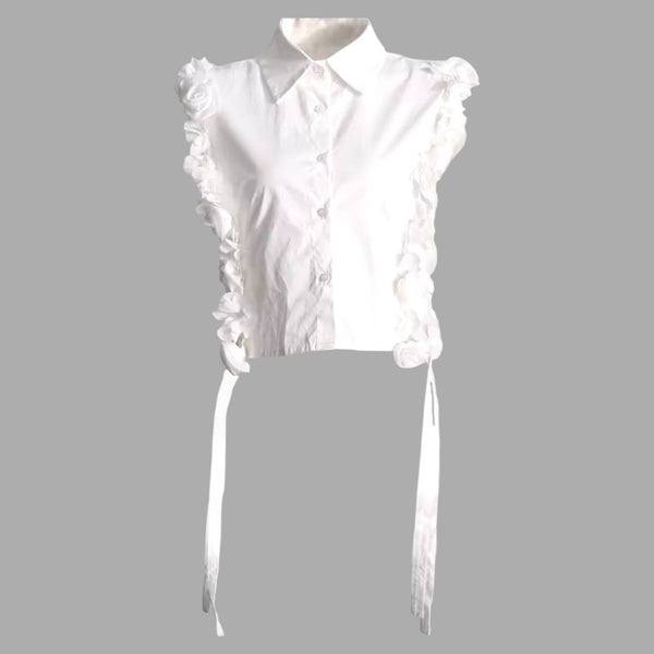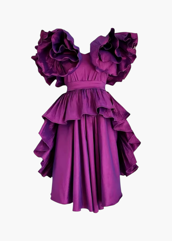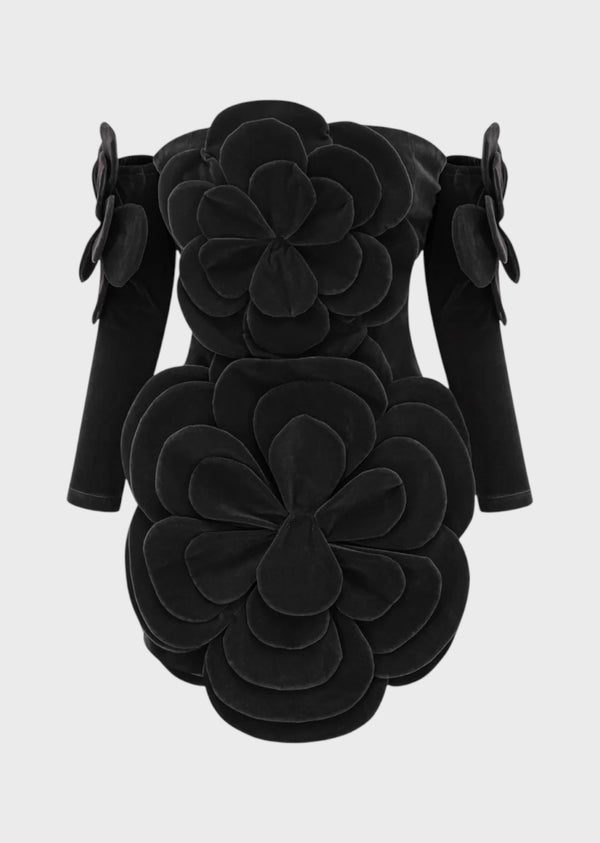 Floral Petal Shoulder Ruffle Hem Mini Dress