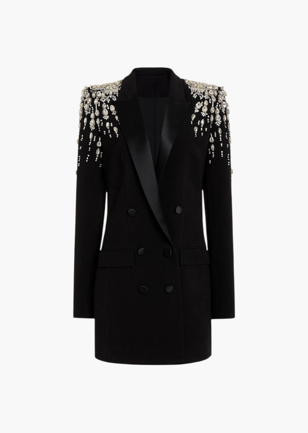 Lapel Collar Shoulder Rhinestone Embellished Blazer