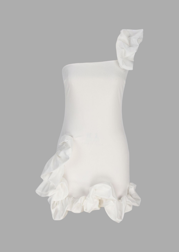 One Shoulder Ruffle Detail Mini Dress