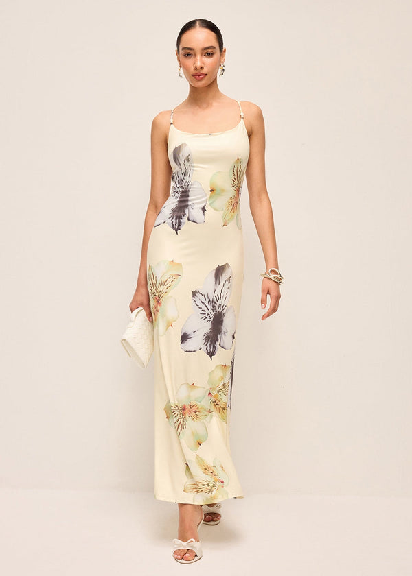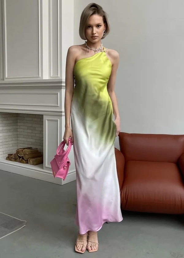 Sleeveless Maxi Dress with Ruched Sides and Tie‑Dye Print
