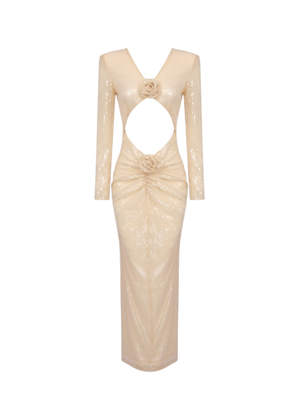 Long Sleeve Cutout Front Clasp Maxi Dress