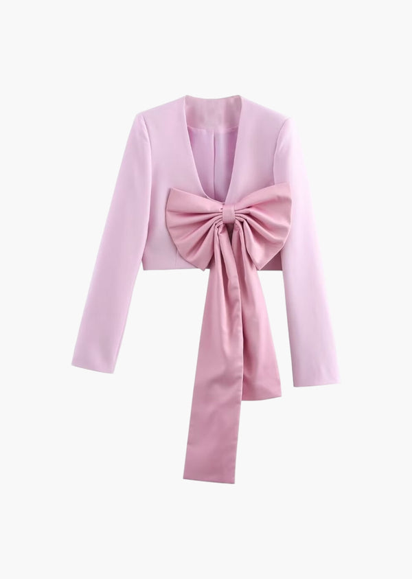 V-Neck Bow Decor Cropped Jacket