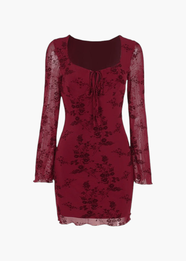 Floral Print Front Tied Long Sleeve Mini Dress