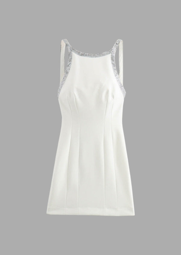 Rhinestone Edge Backless Mini Dress