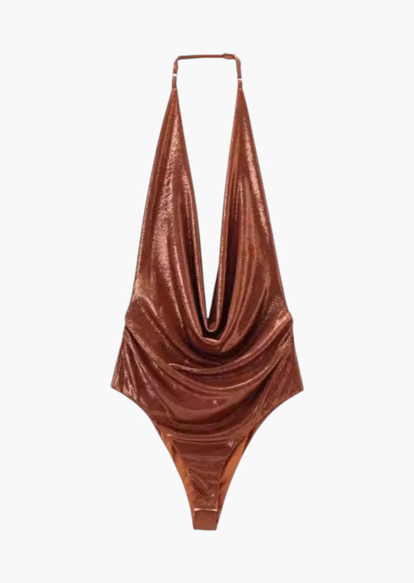 Cowl Neck Halter Backless Bodysuit