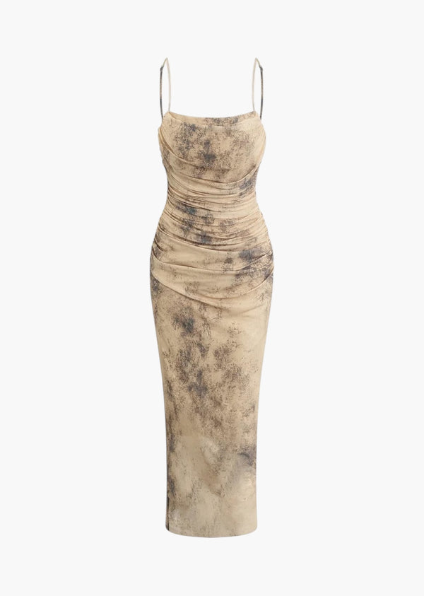 Tie-Dye Ruched Mesh Cami Maxi Dress