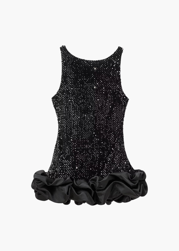 Ruffle Hem Sleeveless Sequined Mini Dress