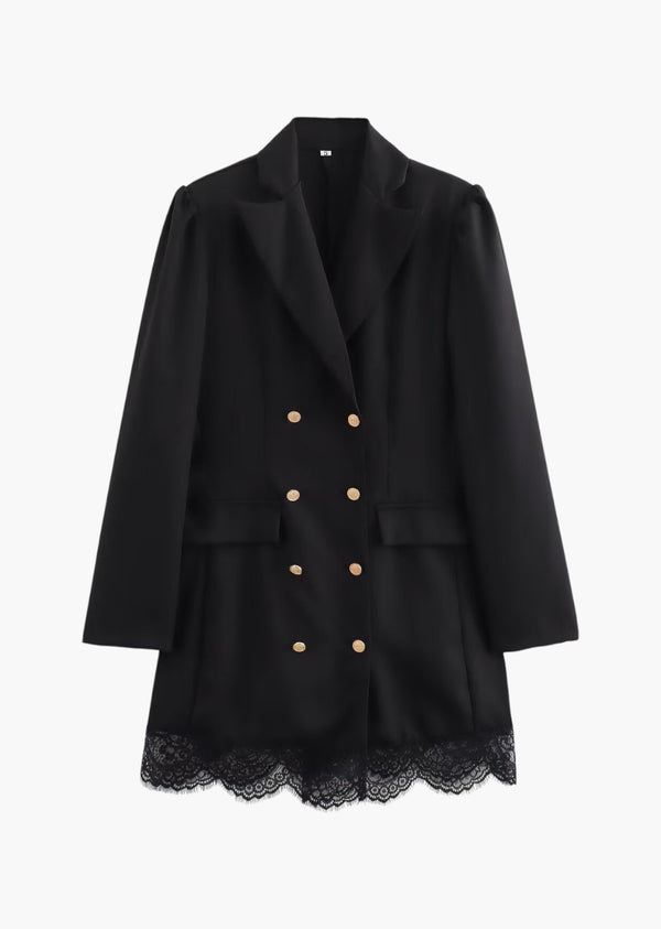 Lace Trim Double Breasted Long Blazer-Dress