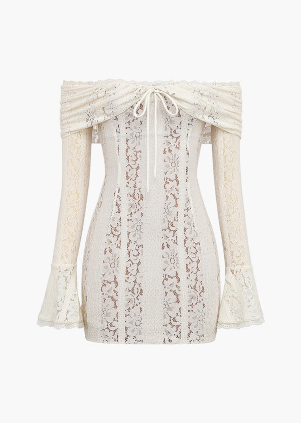 Off-Shoulder Flounce Sleeve Lace Mini Dress