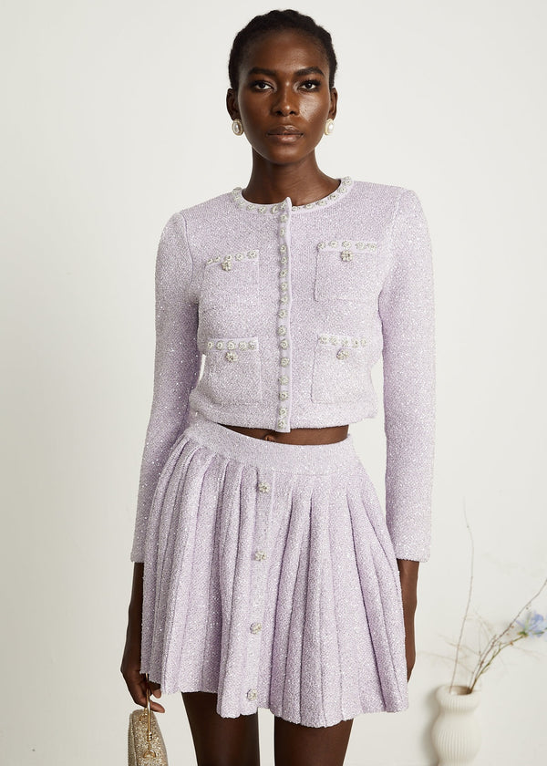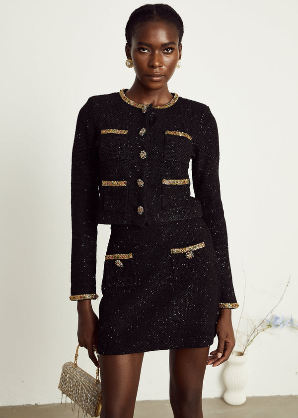 Jewel Trim Tweed Two Pocket Skirt