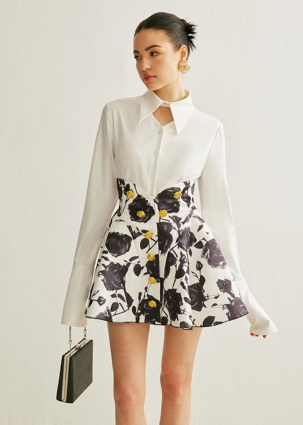 Rose Print Front Buttons High Waist Skirt