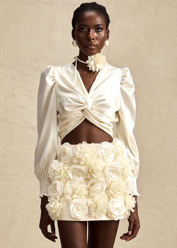 High Waisted 3D Rose Textured Mini Skirt