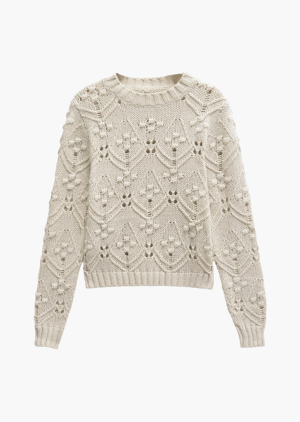 Crew Neck Long Sleeve Bobble Knit Sweater