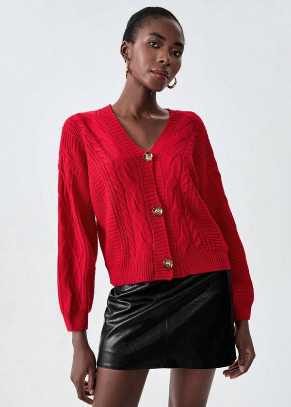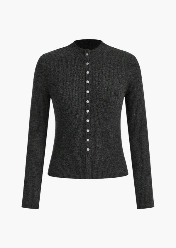 Ribbed Knit Button Front Long Sleeve Cardigan