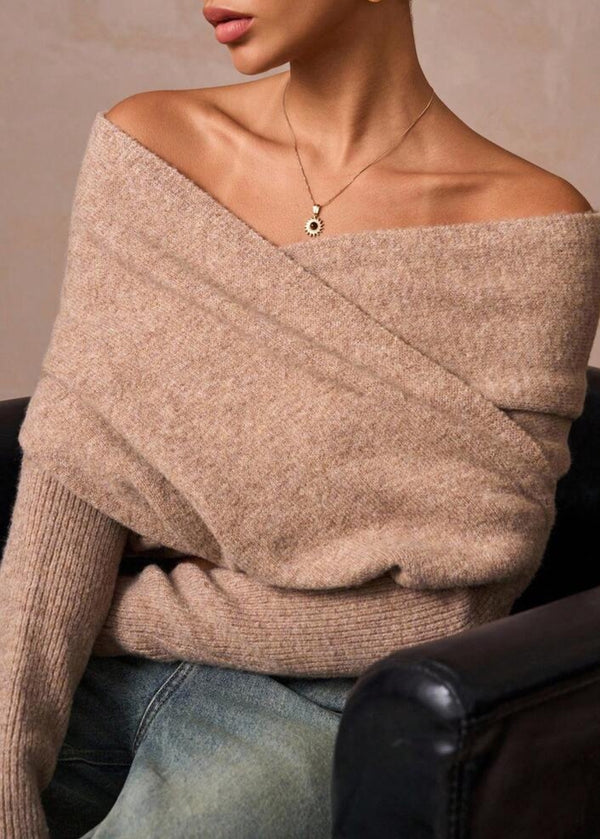 Off-Shoulder Long Sleeve Wrap Knit Top