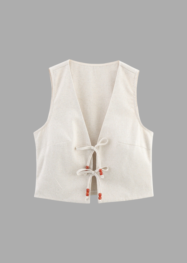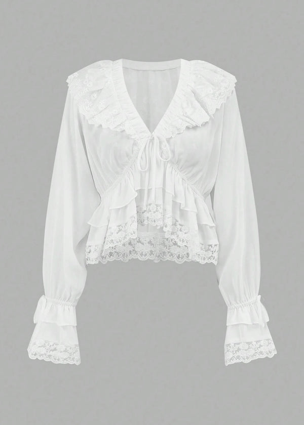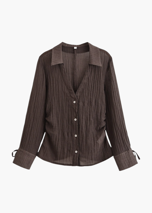 Collared V-Neck Tie Cuff Button-Front Shirt