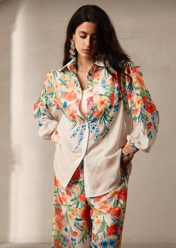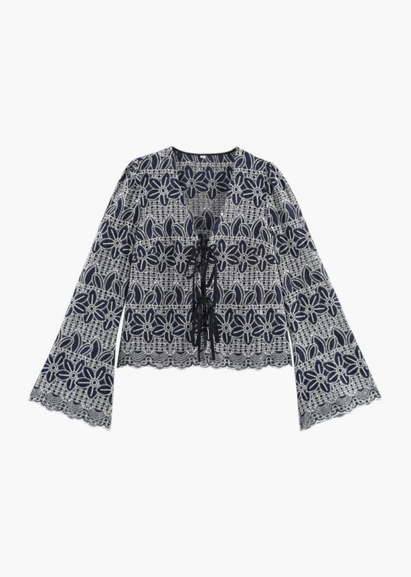 Eyelet Embroidery Button Down Long Sleeve Shirt