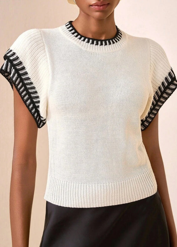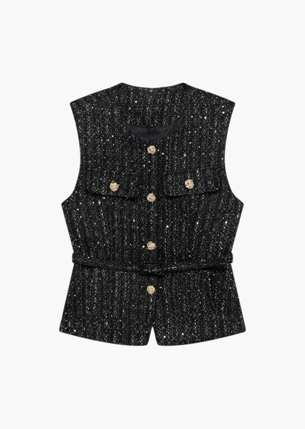 Metallic Thread Knit Mock Neck Sleeveless Top