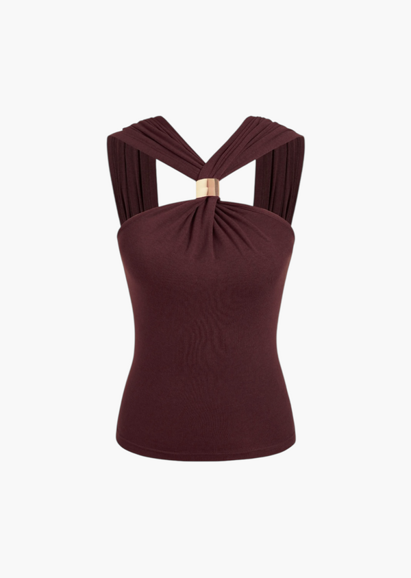 Off-Shoulder Twist Detail Top with Gold Accent