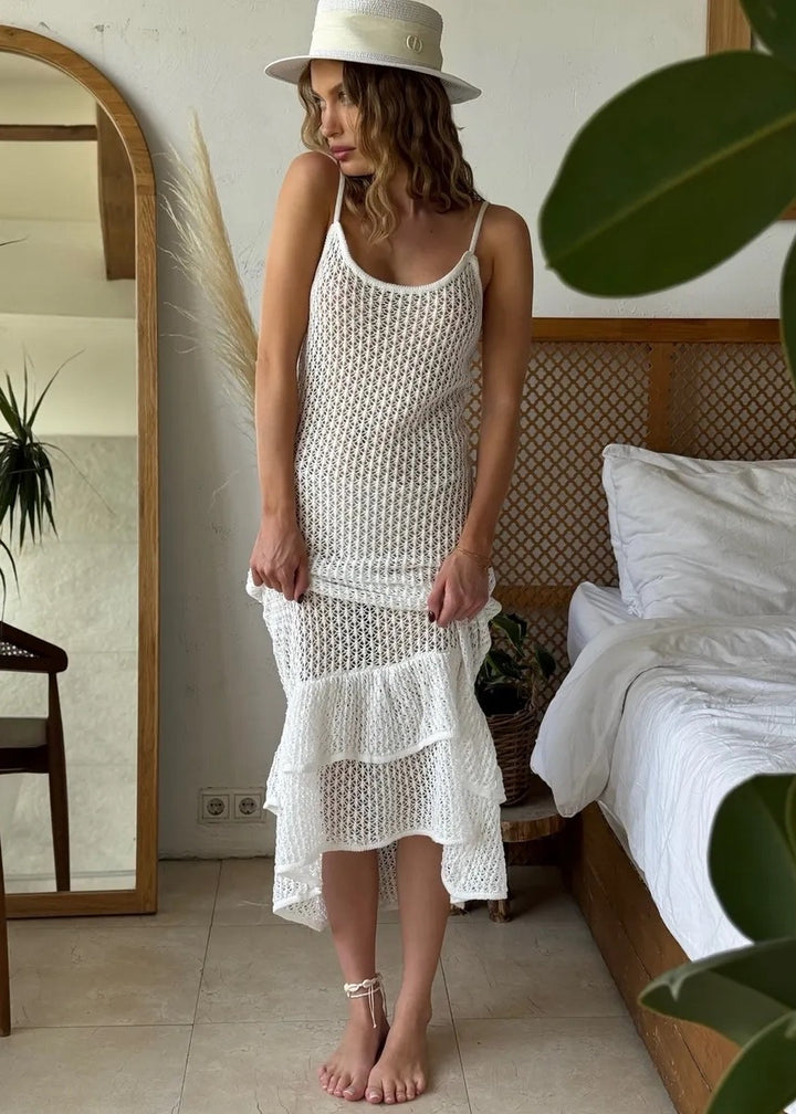 Introducing the Spaghetti Strap Layered Knit Maxi Dress, a graceful addition to your wardrobe designed for both comfort and style. This dress features delicate spaghetti straps that offer a flattering neckline. The unique layered hemline adds movement and visual interest, making it perfect for various occasions. Crafted from a lightweight knit fabric, this piece is ideal for warm weather and easy layering.