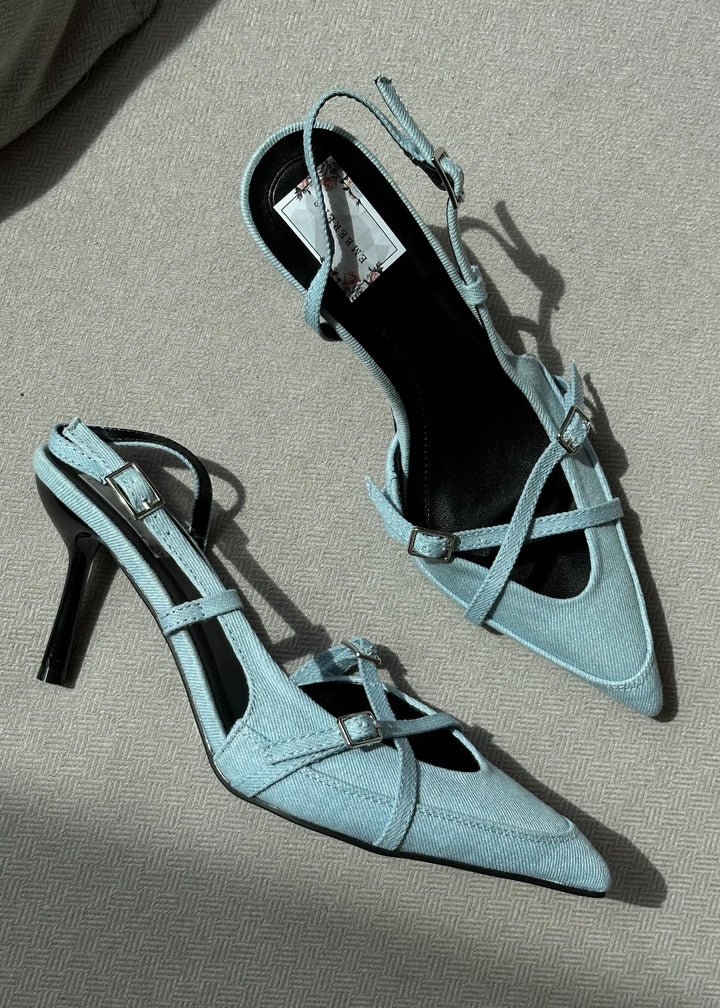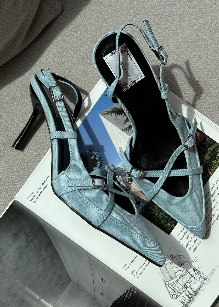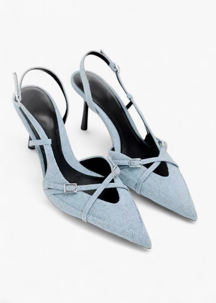 Introducing thePointed Toe Slingback Heels with Crossed Straps, a unique blend of elegance and modernity.