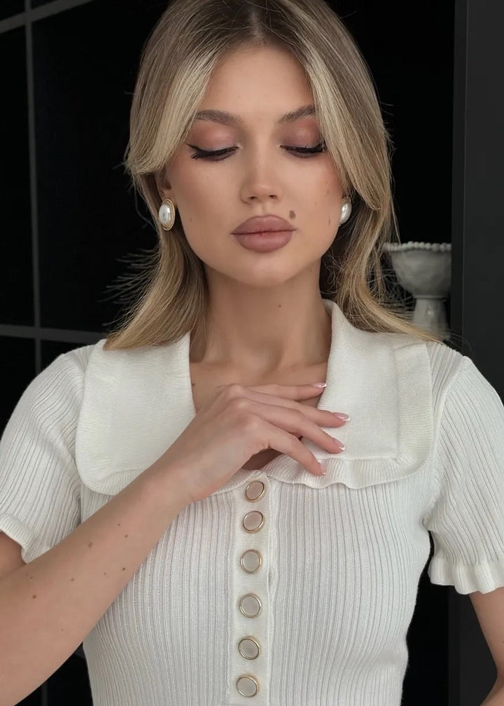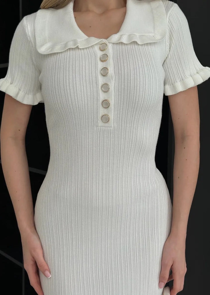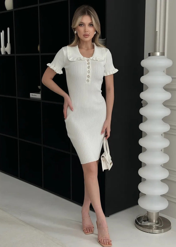 Ruffle Collar Short Sleeve Knit Dress