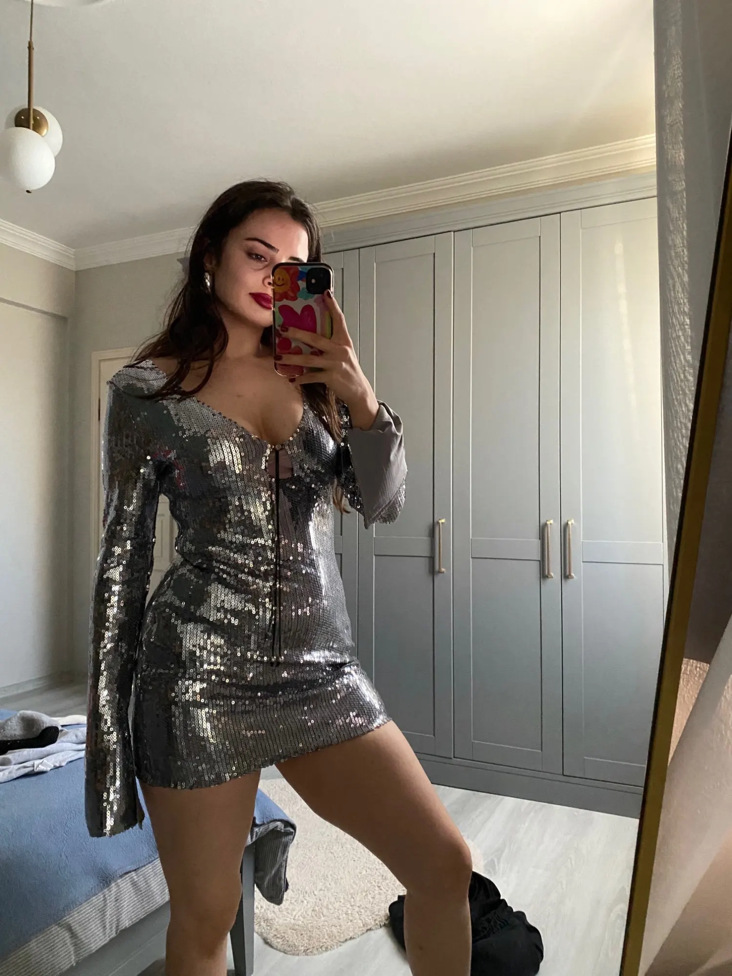 Style Tips Pair this dress with strappy heels and a small clutch for a night out or a party. Keep accessories minimal to let the sequins stand out. A sleek hairstyle will complement the dress's silhouette.
