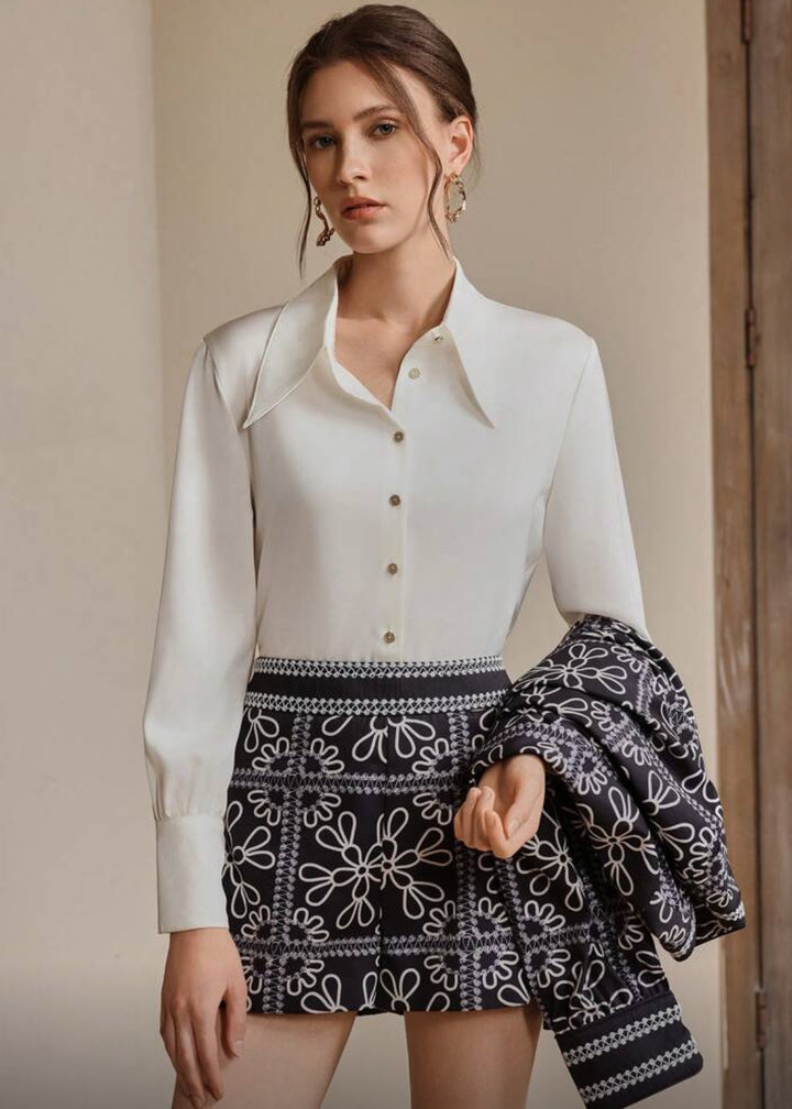 Wear this set over a simple, solid-colored top or blouse, as shown, to let the pattern stand out. Pair with ankle boots or elegant sandals to complete the ensemble.