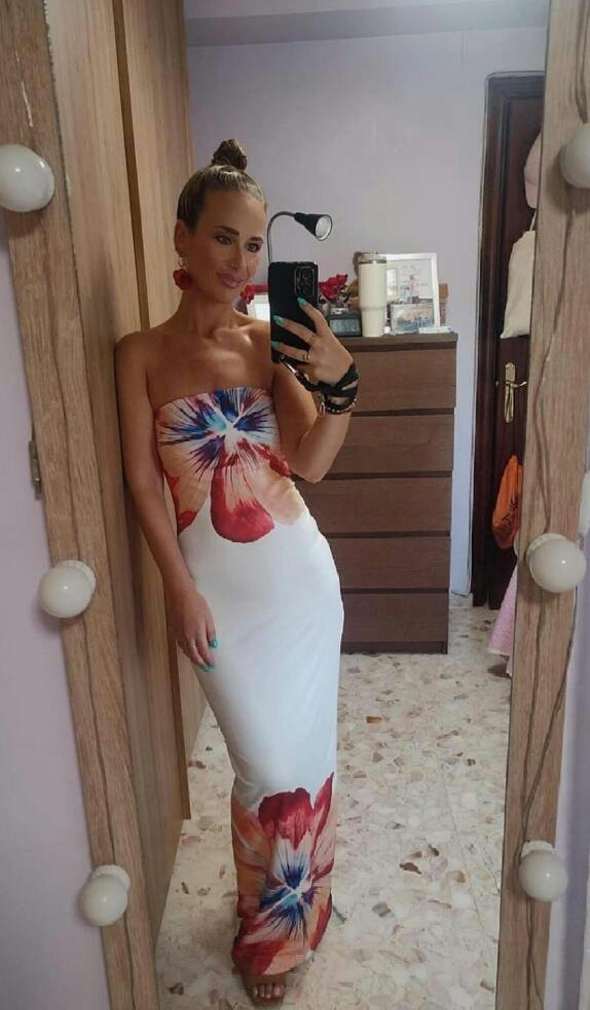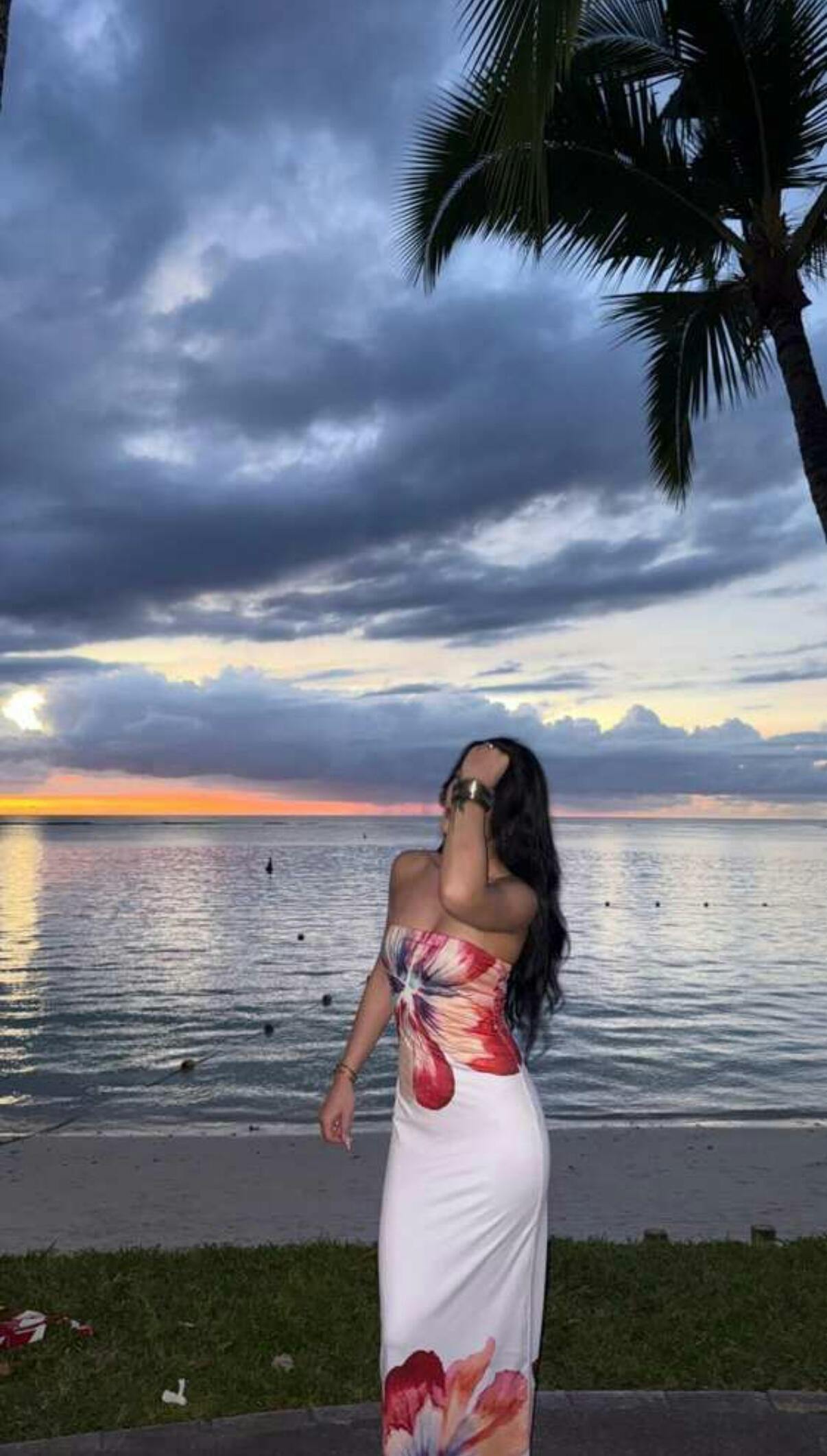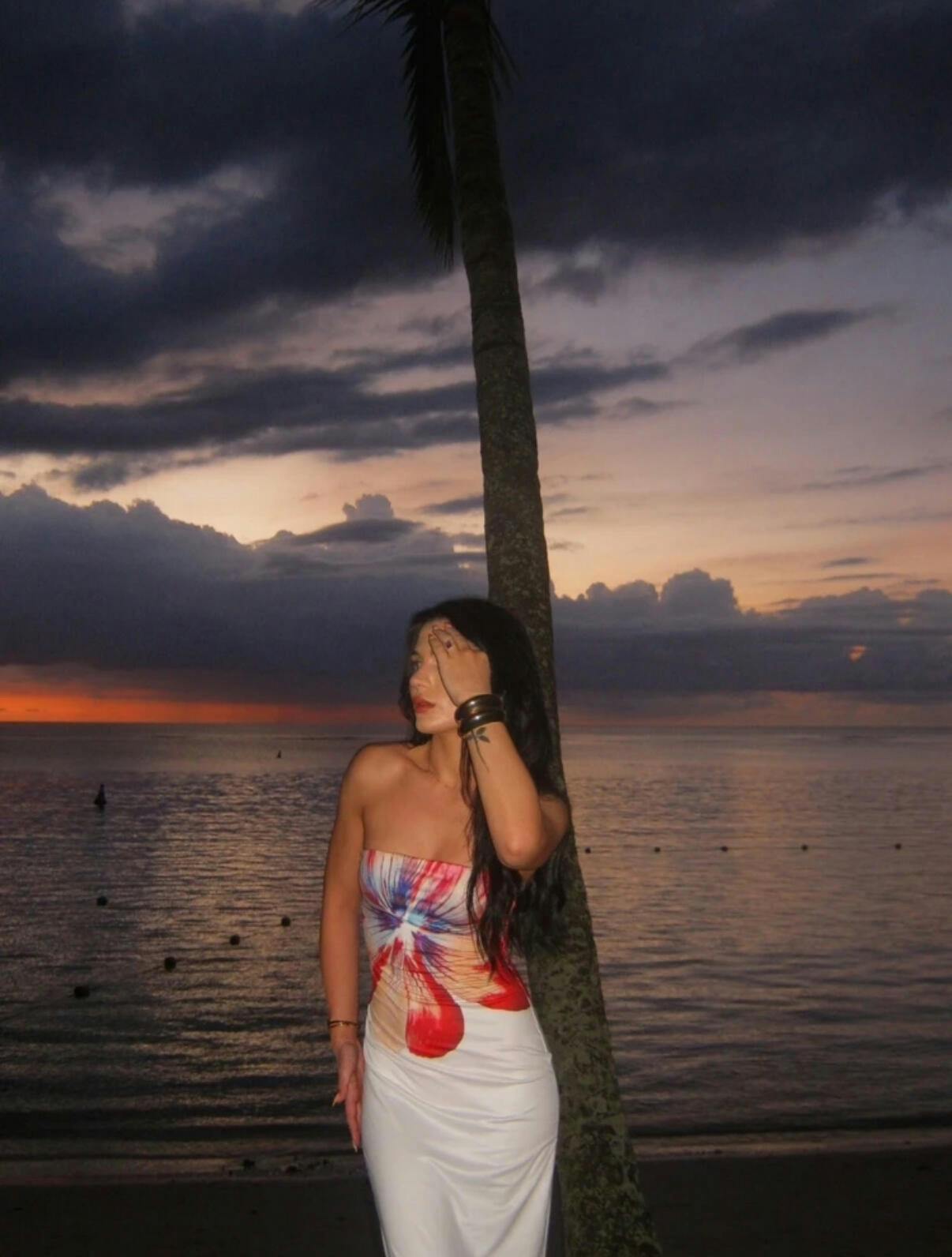 This stunning maxi gown is designed to evoke a sense of tropical elegance. It features a strapless neckline that beautifully highlights the décolletage, offering a sophisticated and clean silhouette. The dress is adorned with a vibrant, large-scale floral print, prominently displayed at the bust and continuing towards the hem, creating a visually striking effect. The form-fitting design gently skims the body, flowing down to a maxi length, making it ideal for resort wear, beach events, or any occasion where you want to embody a relaxed yet refined style.