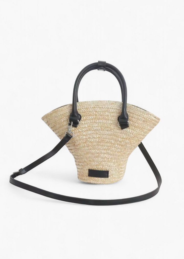 The combination of straw and the option for a shoulder strap makes it both fashionable and functional.