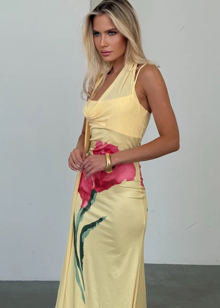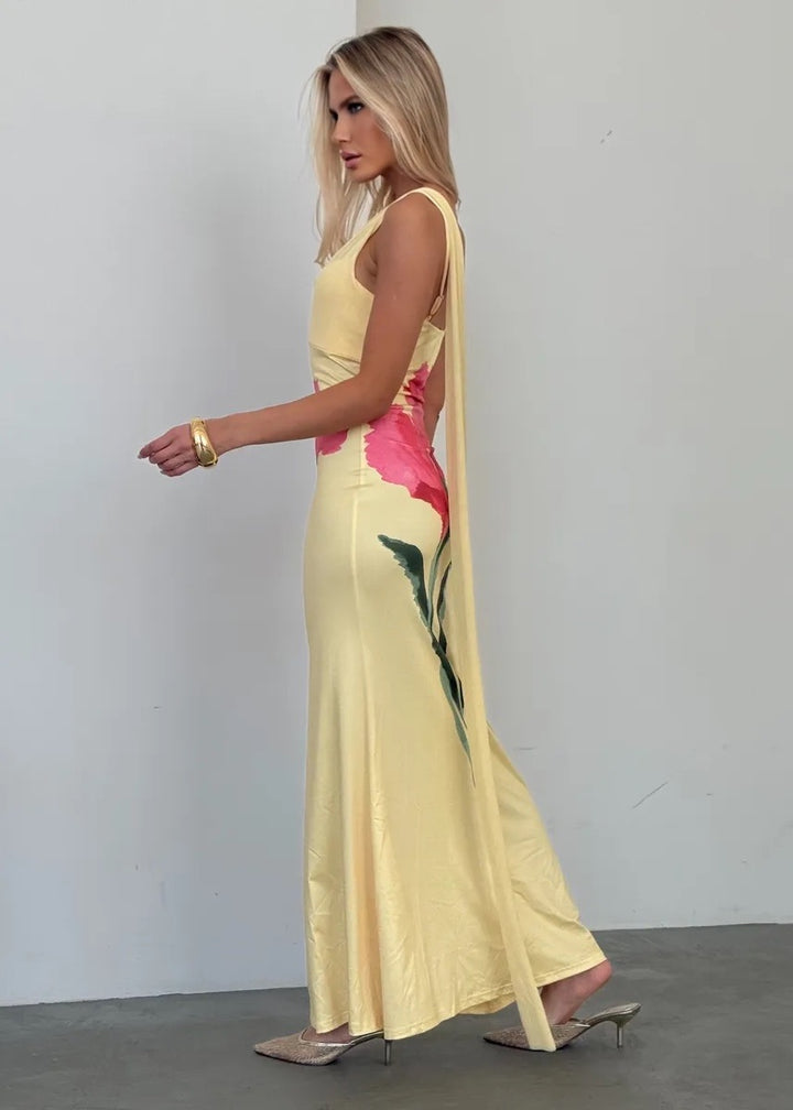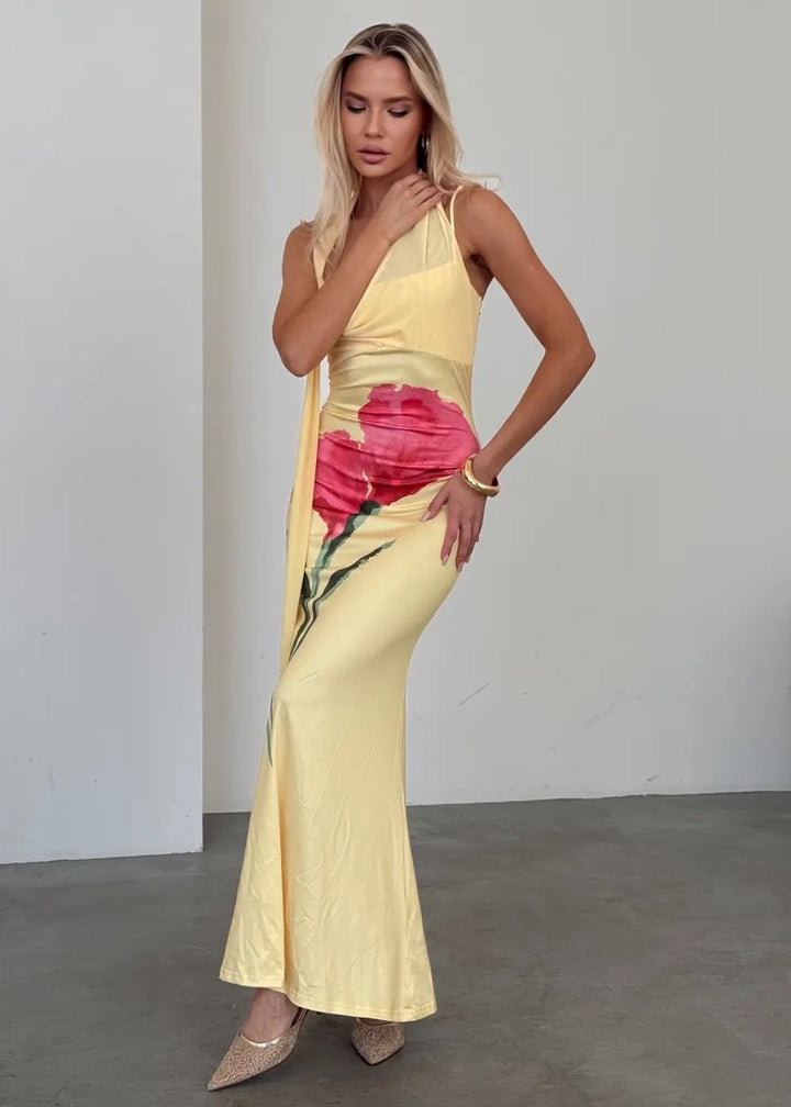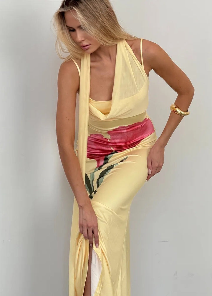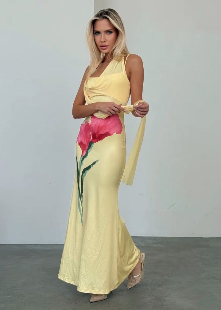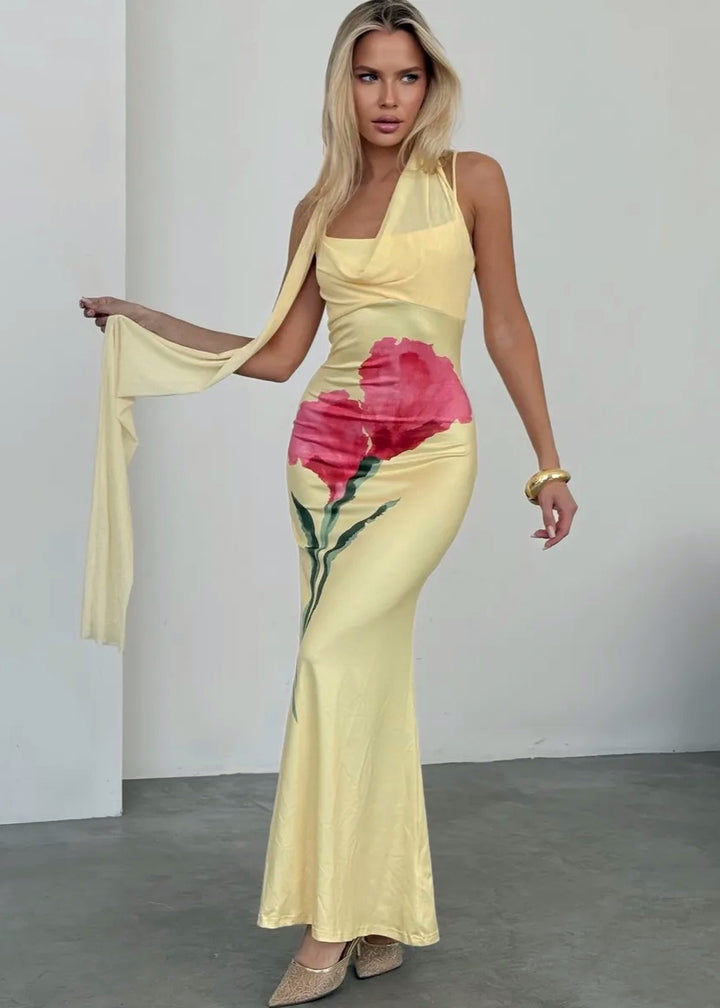 Introducing our exquisite Floral Motif Scarf Detail Maxi Dress, designed to make you the centerpiece of any event. This stunning masterpiece combines elegance with a sense of freedom, creating the perfect ensemble for any sophisticated occasion.