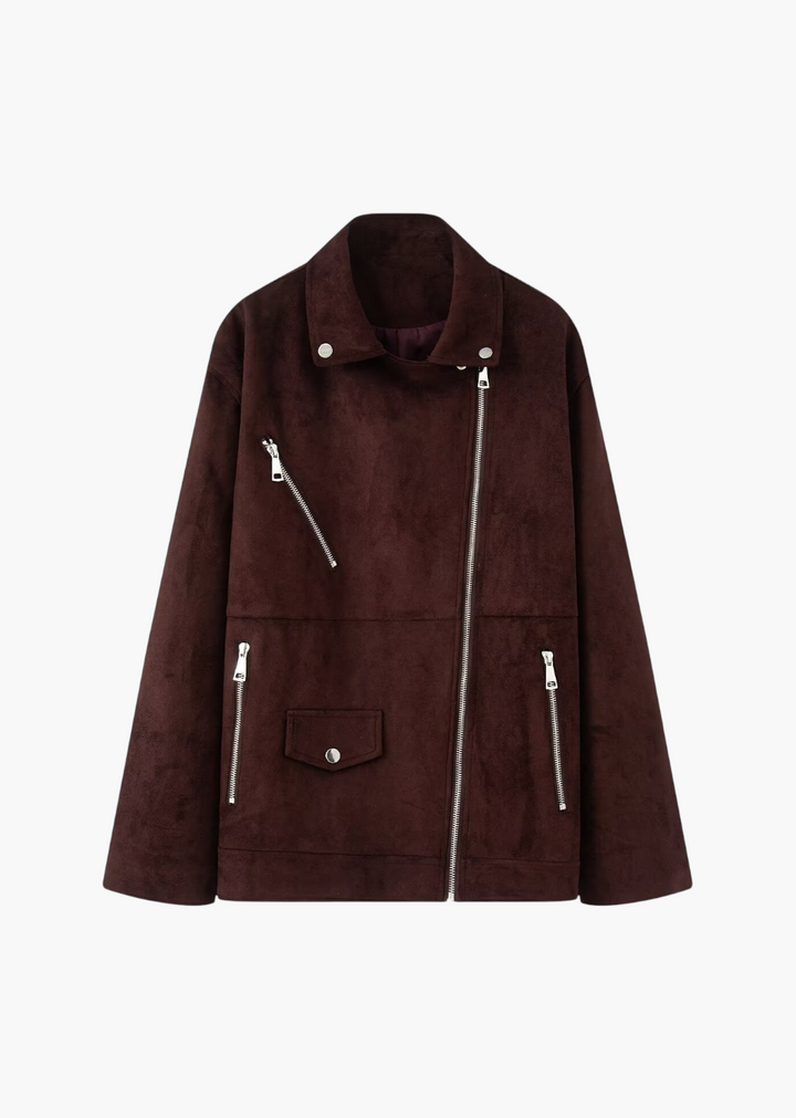 To maintain the jacket's quality, spot clean only with a damp cloth. Do not machine wash or tumble dry. If necessary, consult a professional leather or suede cleaner. Hang to dry away from direct sunlight.