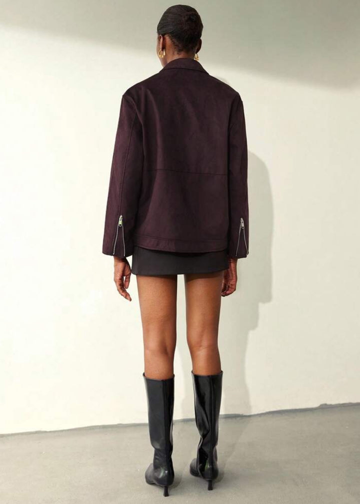 Modern Contrast: Layer over a feminine dress and heels to create a chic, contrasting ensemble.